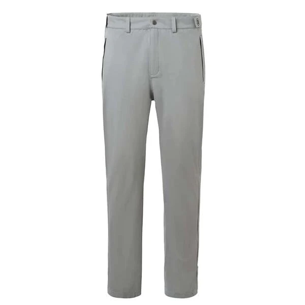 The material is 3-layer with same soft and stretchable fabric outside as inside with a functional membrane bonded between layers. This membrane keeps the rain out and allows for Your body heat to be transported out to the surface where it evaporates. There is no lining in these trousers because of the soft inside and this results in a very comfortable feeling when playing. Trousers have long zippers at leg bottoms for easy wearing, adjustable waist, two front pockets and one back pocket . Abacus logo at waistband.
