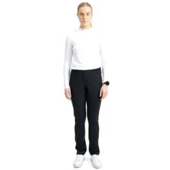 Bounce waterproof trousers are made of a 4-way stretch waterproof fabric that is also highly breathable. All seams are sealed with soft and flexible tape. The material is 3-layer with same soft and strechable fabric outside as inside with a functional membrane bonded between layers. This membrane keeps the rain out and allows for Your bodyheat to be transported out to the surface where it evaporates. There is no lining in these trousers because of the soft inside and this results in a very comfortable feeling when playing. Trousers are a perfect waterproof option for Your regular golftrousers! Flexible waist, two front- and backpockets.