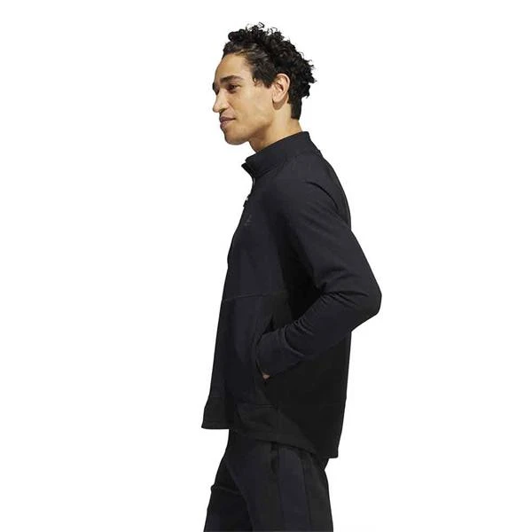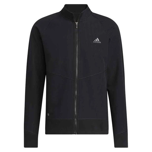 Looking and feeling your best makes a difference on the course. Find your competitive edge in this adidas golf jacket. Its double weave fabric offers warmth and weather resistance to keep you comfortable through a range of conditions, plus it has stretch in all the right places for a natural, unrestricted swing. Inside, the brushed fleece is soft against the skin. The textured exterior lends it an elevated feel.