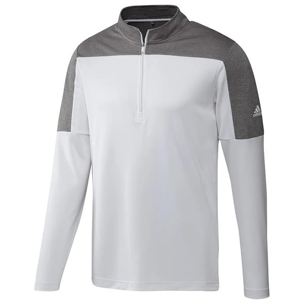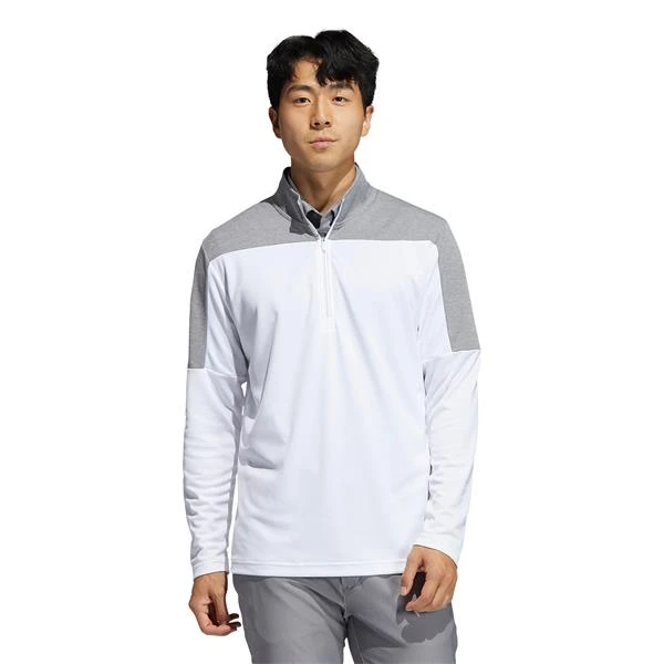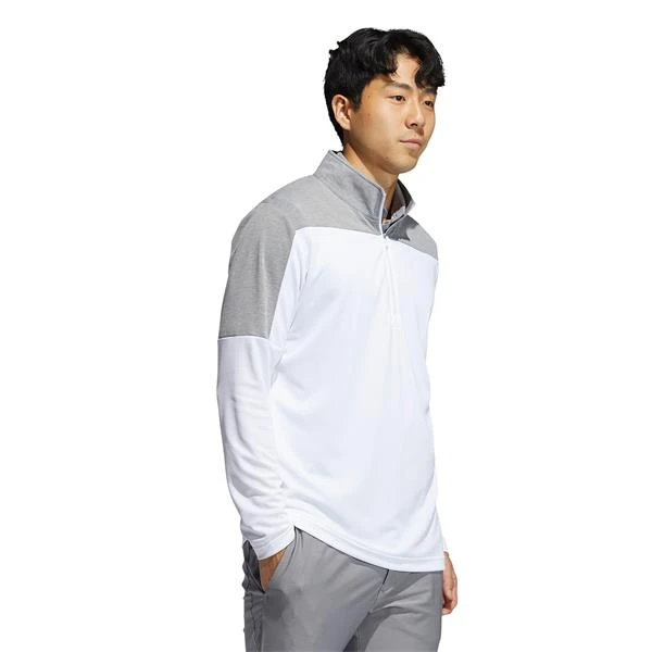 Performance meets style for your cool-weather rounds. The lightweight fabric of this adidas golf sweatshirt makes it perfect for layering over a polo or t-shirt. You can easily pull it on and off thanks to the stretchy build and half-zip collar. The contrasting colors elevate your look.