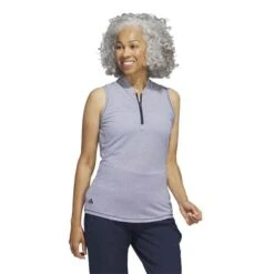 Swing without restrictions while you shoot low. This adidas golf polo shirt is made of a soft and stretchy fabric to keep you comfortable from the time you tee off till you sink the last putt. The sleeveless design lets you swing freely, and the half-zip design helps ventilate when the weather warms up.