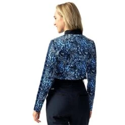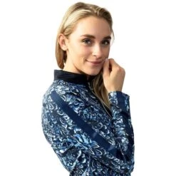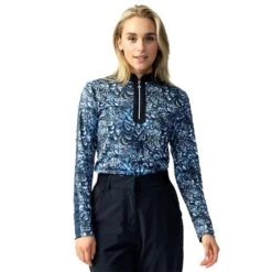 Silja half-neck shirt is a long-sleeved top with a half zip closure. Made in a quick-dry fabric with a frosted ice inspired print.