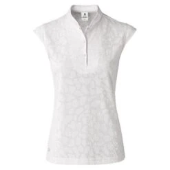Uma by Daily Sports is a feminine golf shirt with small cap sleeves. Stretch quick-dry jacquard-weave jersey. Rhinestone buttons at the front. Edge trim to armholes, placket and round stand-up collar. Regular fit with slightly fitted waist.