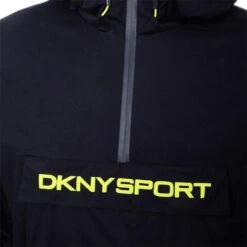Highly functional windbreaker jacket from?DKNY Sport?designed to maximise your protection from the elements and output in the style stakes. The half zip, hooded jacket shields you from unexpected showers thanks to its water-repellent fabric. Lightweight, breathable and equipped with zipped pockets this jacket will quickly become indispensable.