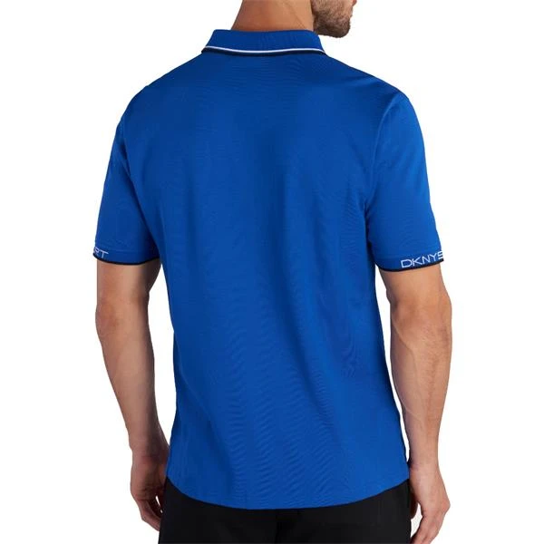 A powerhouse of a pique polo shirt from DKNY Sport with exceptional branding detail throughout. From the jacquard logo tipping on the cuffs to the knitted tape tracking down the sleeves this polo packs a punch. A winning blend of soft cotton and high performing recycled polyester combine to help you keep your cool.