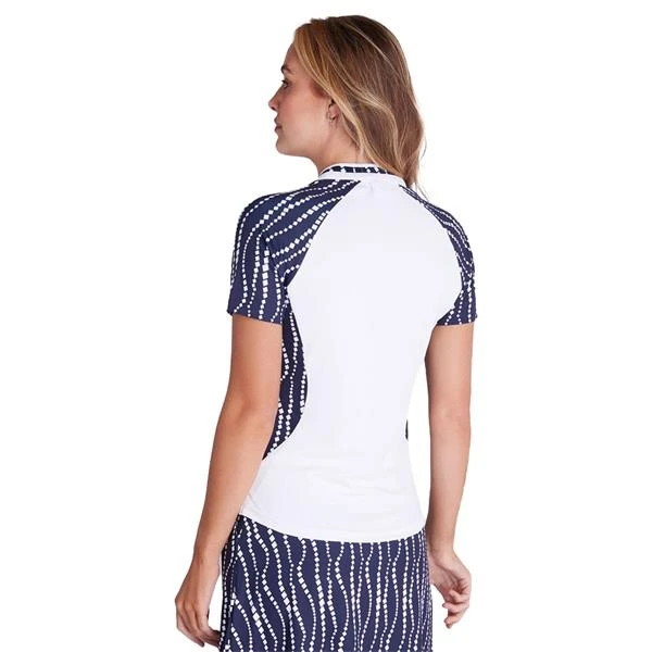 Super smart with a sporty vibe the Emily polo from Green Lamb features an attractive print and solid colour design with shaped side panels and raglan sleeves for a truly flattering silhouette. Made from a Quick Dry performance fabrication to keep you cool and dry. Recycled polyester is a greener choice for the environment..