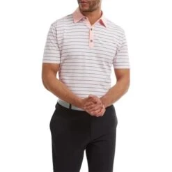 FootJoy Gents Accented Stripe Lisle Shirt Pink – Graphite