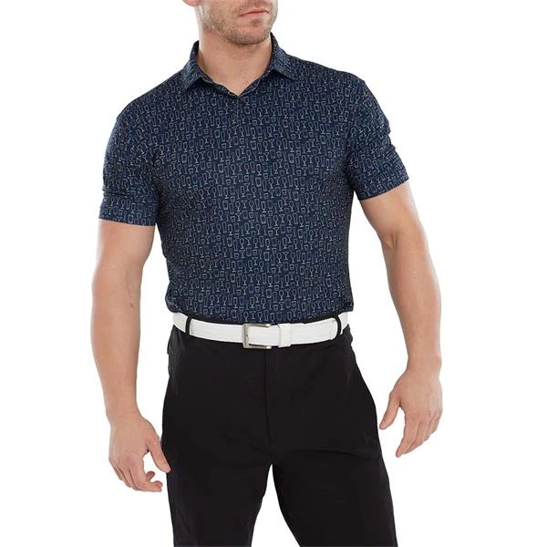 FootJoy Gents Glass Print Lisle Polo Shirt Navy