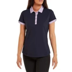 FootJoy Ladies Colour Block Pique Polo Shirt Navy