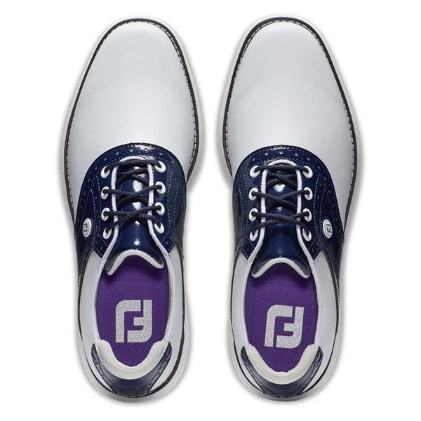 FootJoy Ladies FJ Traditions Spikeless Shoes White – Navy – Purple