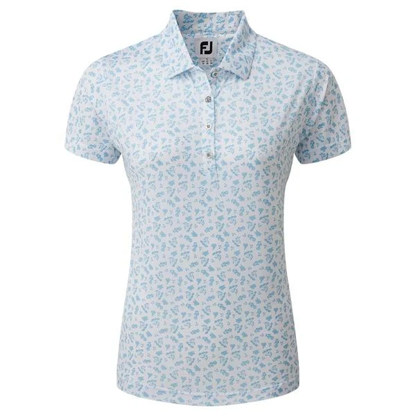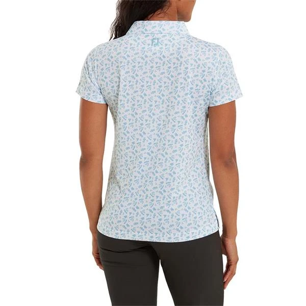 FootJoy Ladies Floral Print Lisle Polo Shirt White – Blue