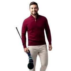 Glenmuir Gents Devon Zip Neck Sweater Bordeaux