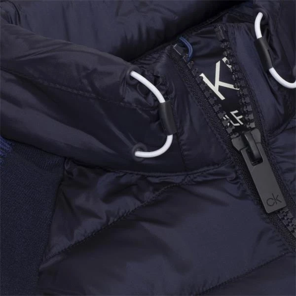 Durable performance and contemporary styling ensure the Dynamo tech knit jacket from Calvin Klein golf is a standout garment from the Chill Force range this season. This high-spec fitted jacket features padded panels front and back with super stretchy tech engineered knit sides and sleeves with a textured tonal finish. Chill Force outer layer technology will perform across a variety of pursuits.
