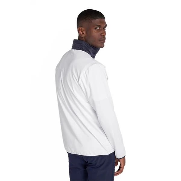 Defeat the ever-changing weather with the Calvin Klein Forest Lake Half zip top from the Chill Force product series – a stunning mid-layer transitional piece for your wardrobe this season. Featuring a woven padded front panel and a modern chunky zipper with a toasty mock neck collar this jacket will provide the warmth you need to play your best game. Contrast stripes on the inside back neck for a pleasing colour pop.