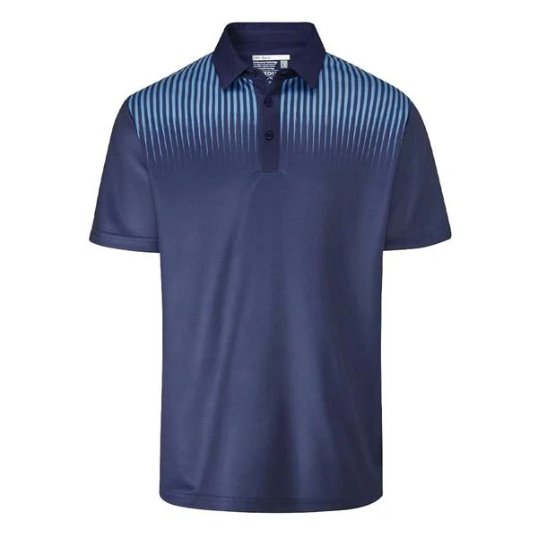 The pebble polo delivers a striking look with vertical fading stripes to front and back. The Stuburt logo on left sleeve and back neck creates a modern-tech feel, while DRI-Back moisture transfer technology and enhanced breathability deliver on-course comfort and performance.
