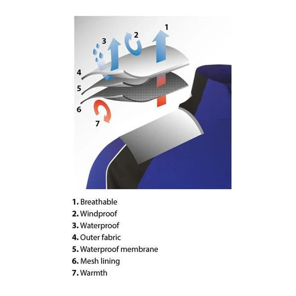 - Ergonomic design with two-layer technical fabric construction combined with mesh lining providing highly waterproof 8,000mm rating