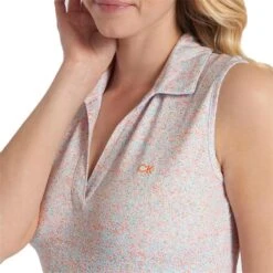 Calvin Klein Golf Ladies Alden Sleeveless Polo Shirt Coral