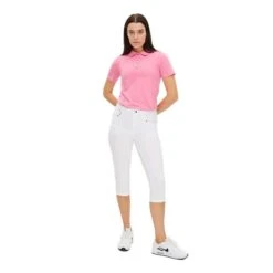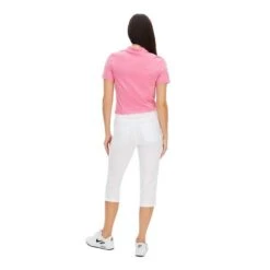 The classic Rohnisch 4 way stretch “comfort stretch” material has been brought back by popular demand! The new Chie range has a new classic front pocket design, complete with ball marker, zip and button fastening. The high waisted fit is both comfortable and stylish and the knee length bermuda short is the most perfect addition to your golfing wardrobe. A classic length capri with a slight sit at the leg opening , regular fit with slim legs.