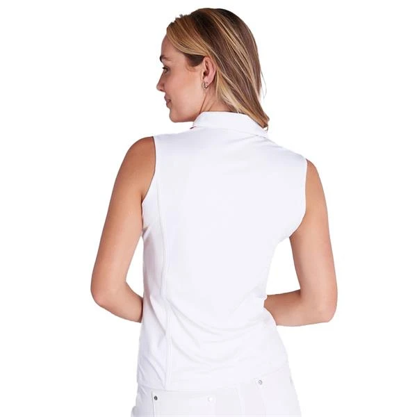 The Erica Sleeveless Polo cuts a sleek silhouette thanks to the contrasting shaped side panels that make for a flattering shape. High performing and comfortable this polo will allow you to play your best game and keep you feeling fresh throughout your round. Incorporating recycled polyester for a better choice for the environment.