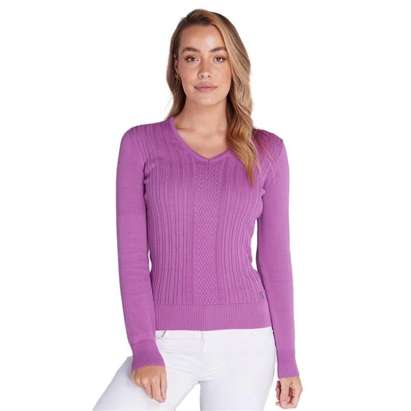 Green Lamb Ladies Gillian Slim Fit V-Neck Cable Sweater Violet SG21872