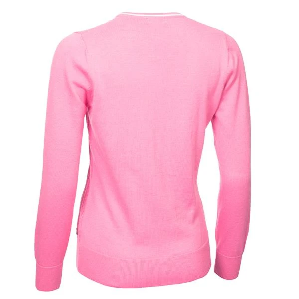 Green Lamb Ladies Madison Cable V-Neck Sweater Candy