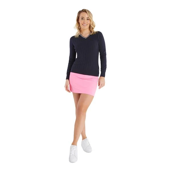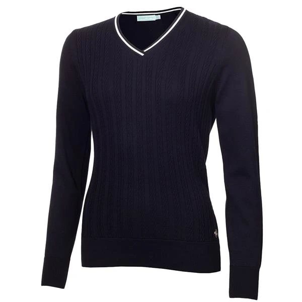 Green Lamb Ladies Madison Cable V-Neck Sweater Navy