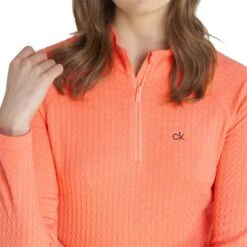 Calvin Klein Golf Ladies Mina Zip Neck Top Coral