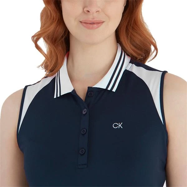 Calvin Klein Golf Ladies Mohawk Sleeveless Polo Shirt Navy – White