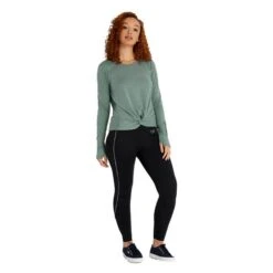 The Nida long sleeve top will take you from the gym to the coffee shop – just about anywhere in effortless style. Expertly crafted from a silky soft and smooth fabric with added stretch for a flattering fit. A scoop neck design with knot detail on the front hem makes for a relaxed look and immensely comfortable feel.