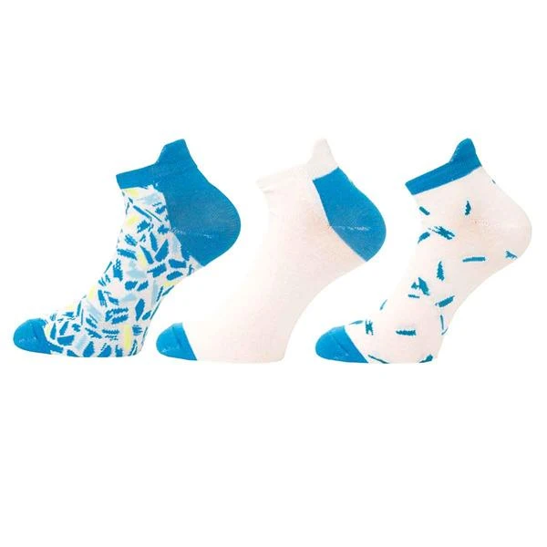 Three pair pack of low cut ankle socks featuring mix of collection coordinating pattern and colourblock styles