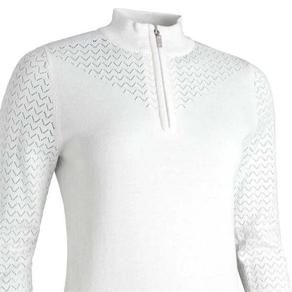 Glenmuir Ladies Silvia Zip Neck Pointelle Cotton Sweater White