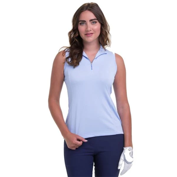 EPNY Ladies Sleeveless Convertible Zip Mock Polo Shirt Blue Eyes