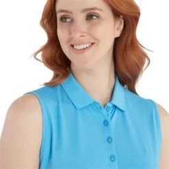 Calvin Klein Golf Ladies Sleeveless Performance Cotton Pique Polo Shirt Herit Blue