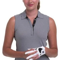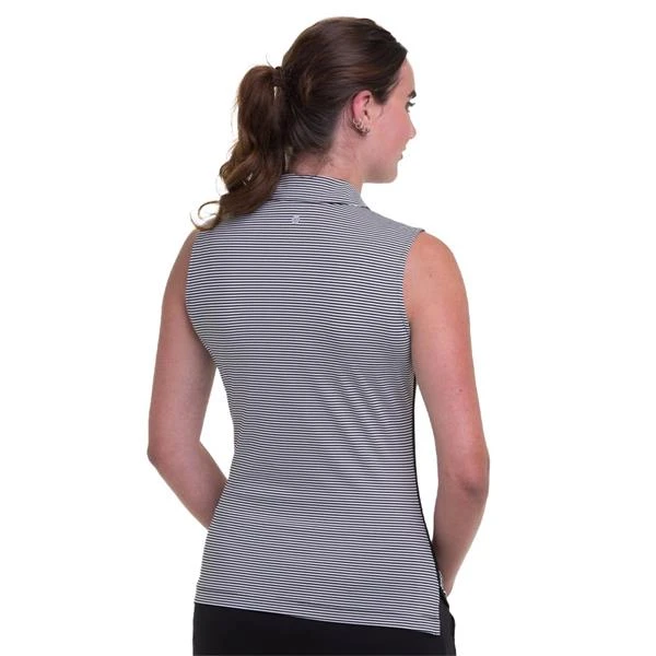 EPNY Ladies Sleeveless Snap Placket Polo Shirt Black