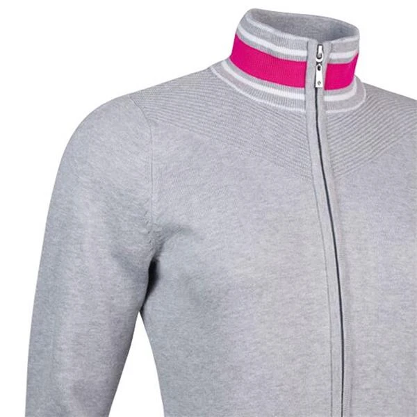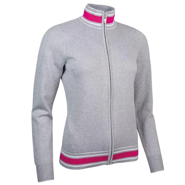 Glenmuir Ladies Uma Zip Through Ottoman Chevron Cotton Sweater Light Grey Marl LKC2654