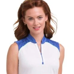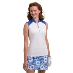 EPNY Ladies Zip Mandarin Collar Top White Multi