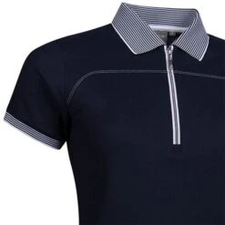 Glenmuir Ladies Zip Neck Performance Pique Polo Shirt Navy – White