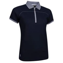Glenmuir Ladies Zip Neck Performance Pique Polo Shirt Navy – White