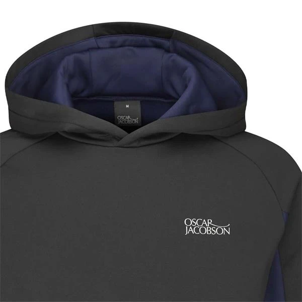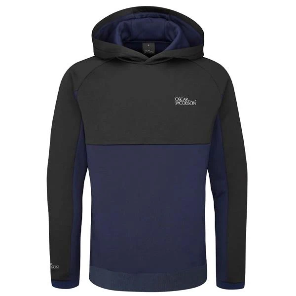 Bringing a new concept to the Oscar Jacobson brand, this modern overhead hoodie offers complete versatility on how it is worn. Consisting of brushed inner fleece and an elasticated hem and cuffs this product provides full comfort and warmth without hindering performance. Inspired by the modern-day golfer the Trapp features cut lines in the right areas complete with considered details, alongside a moisture wicking material its purpose is to create less distraction during play. Oscar Jacobson logo left chest, right wrist and hood.
