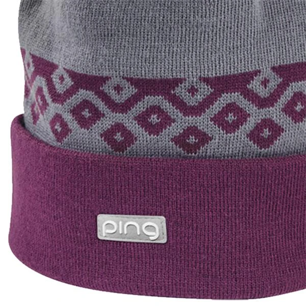 Look stylish warding off the chill in the Ladies Nightingale Knit, adorned with a winter-themed graphic, a wide-roll headband for flexible comfort (one size fits most), with a pom and a micro patch featuring the ladies PING logo.