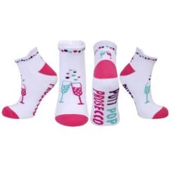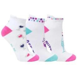 This 3 pack of fun Ladies ankle Golf socks has a golf boozy theme! They are not only fun but also very comfortbale golf socks with a cushioned sole and compression fit, for maximum comfort. Made from a soft, stretchy cotton blend fabric that gives you improved support for your foot. This fabric blend also has great breathability, allowing air to circulate so your feet will feel dry and comfortable whilst not getting sweaty. These Golf Socks won’t lose there shape even after many washes. They are suited to UK sizes between 4 and 7.