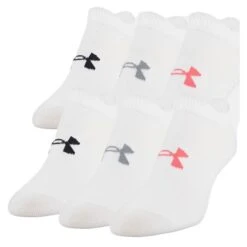Under Armour Ladies Essential No Show Low Socks 6 Pairs White 1332981-100