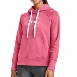 Under Armour Ladies Rival Fleece Metallic Hoodie Pink