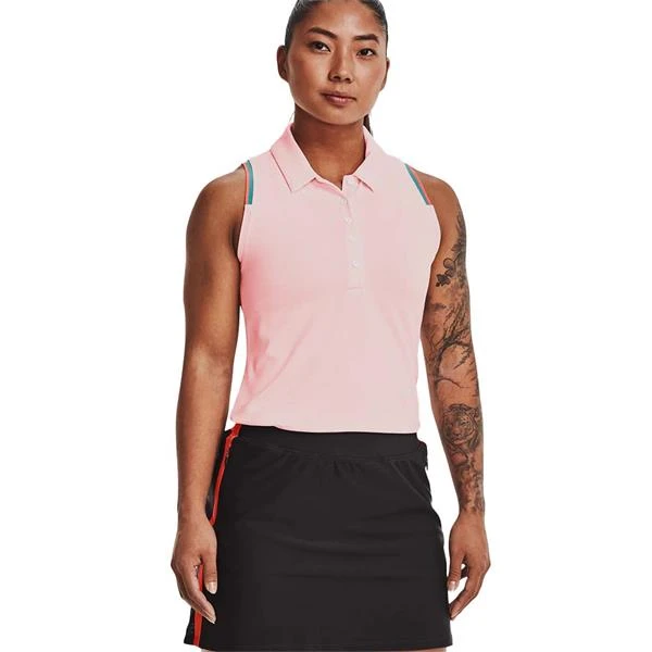 Under Armour Ladies Zinger Point Sleeveless Polo Shirt White – Pink Sands 100